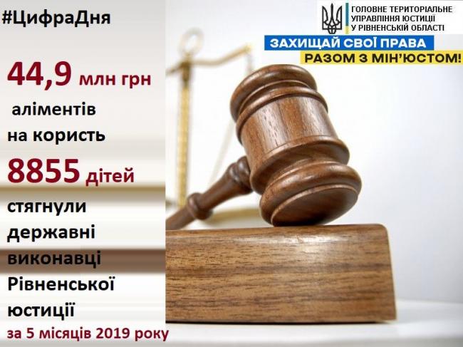 Працівники органів державної виконавчої служби Головного територіального управління юстиції упродовж цього року вже стягнули майже 45 млн грн аліментів на користь 8 855 дітей. З них у зв’язку із застосуванням до боржників санкцій Закону #ЧужихДітейНеБуває – 19 млн 951 тис грн.