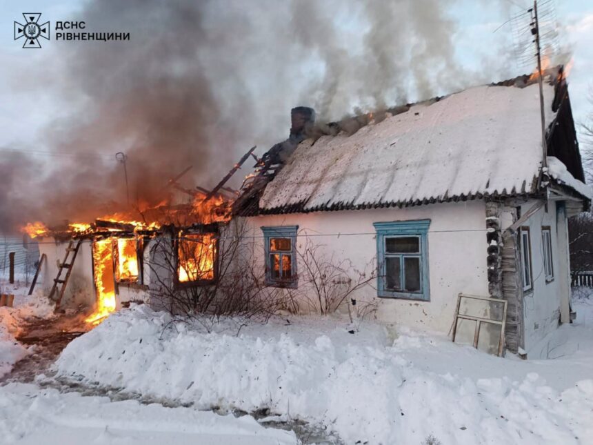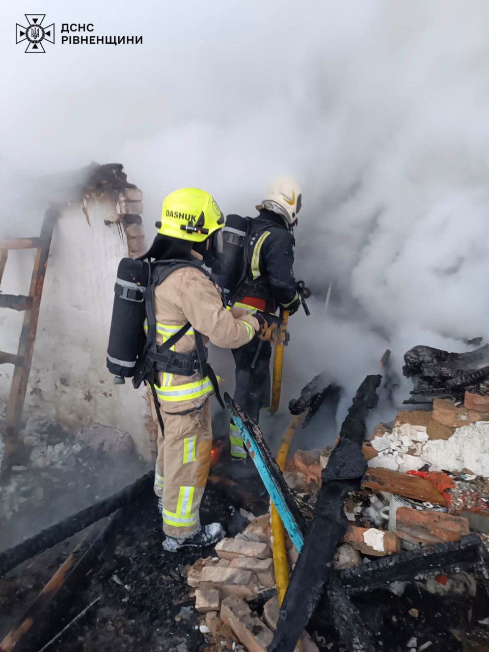 – Прибувши на місце побачили, що будинок повністю охоплений вогнем. Вогонь встиг знищити покриття та перекриття житлового будинку, – кажуть у ГУ ДСНС Рівненщини.