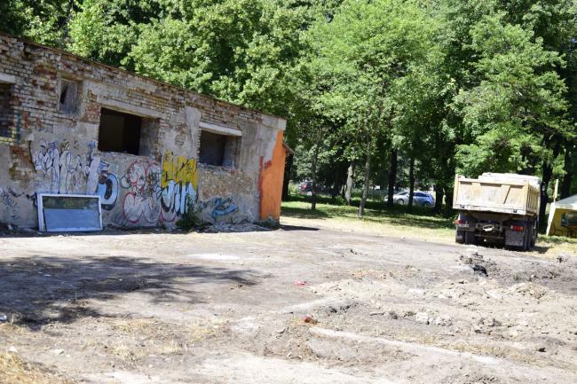 На місці цього занедбаного туалету підприємець Юрій Торгун, який раніше був секретарем Рівненської міськради, збирався збудувати копію палацу Любомирських. І нібито саме задля реалізації цієї мрії й взяв в оренду на 49 років цю землю, що неподалік стадіону «Авангард». Скоро мине вже пів строку оренди, але ні палацу, ні бодай ремонту споруди — немає. Днями рівняни, які люблять прогулюватися в парку, помітили на цій ділянці встановлені літні павільйони та спробу очистити колишній туалет від сміття. Виявилось, розмістився на землі Торгуна пейнтбольний клуб — той, який прогнали торік з басівкутського пляжу.