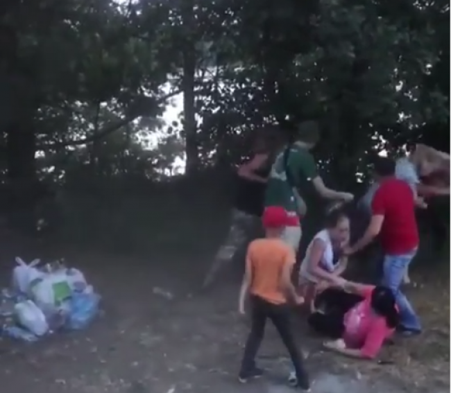 Опісля бійка продовжилася надворі, а плакати стало значно більше дітей. Як видно з відео, що поширила група «Типове Рівне», билися не лише чоловіки, а й жінки, які одна одну вдаряли сумочкою по голові. Розборонити намагався водій.