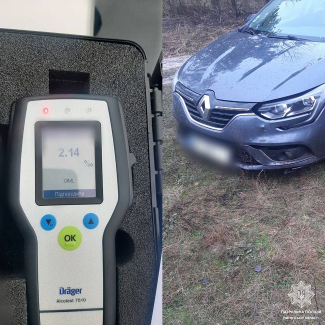 Під час перевірки документів у 27-річного водія інспектори помітили ще й ознаки алкогольного сп’яніння. Він пройшов огляд на місці події, Драгер показав результат 2,14 проміле алкоголю в крові.