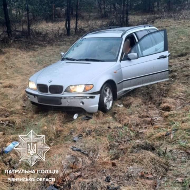 На автодорозі Н-25 Городище — Рівне — Старокостянтинів патрульні помітили автомобіль БМВ, який злетів в кювет.