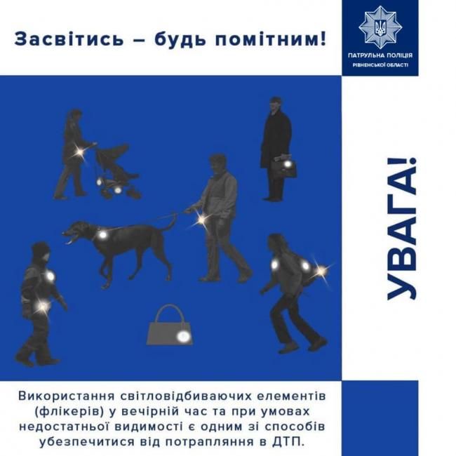 – Будьте помітними для водіїв, – радить пішоходам патрульна поліції Рівненської області. – Бути видимим на дорозі – це важливо. Подбайте про власну безпеку!