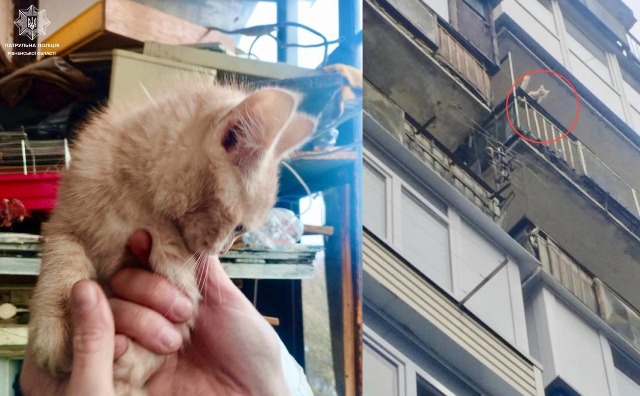 Патрульні врятували котика, який був зачинений на балконі багатоповерхівки