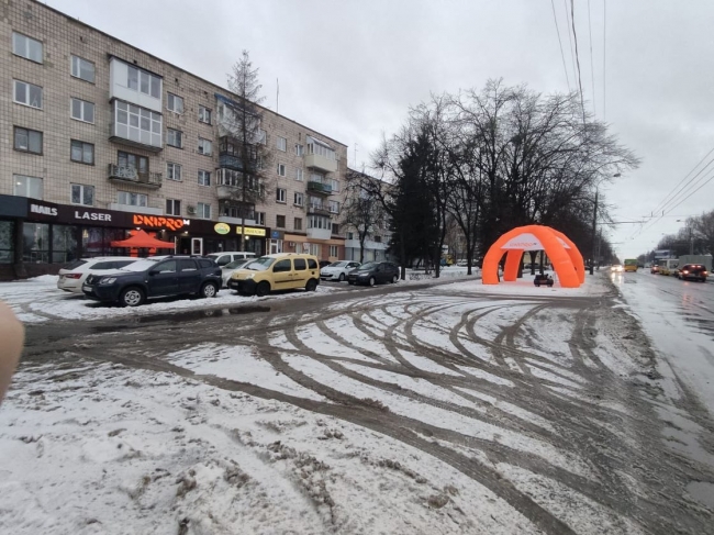 Сьогодні, 28 січня, працівники відділу безпеки дорожнього руху винесли постанову на відповідальну особу (продавця) за ч. 2 та ч.3 ст. 140 (За порушення визначеного законодавством порядку погодження встановлення носіїв рекламоносіїв, технічних засобів та проведення будь-яких робіт на автомобільних дорогах, вулицях і порушення нормативів щодо обладнання на місці проведення робіт на автомобільних дорогах) КУпАП та видали вимогу/припис на демонтаж.