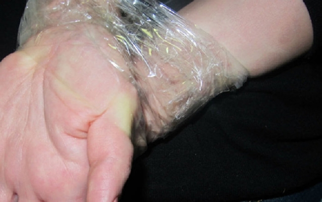Прийшла до тями тоді, коли її руки та ноги були зв‘язані клейкою стрічкою. В той час чоловіки нишпорили по кімнатах з метою знайти цінні речі та гроші.