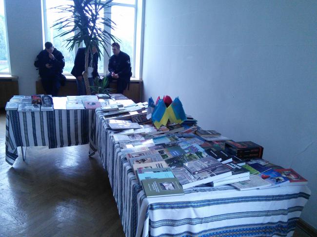 Комунальне підприємство облради "Рівнекнига" перед входом до сесійної зали продає патріотичні книги.