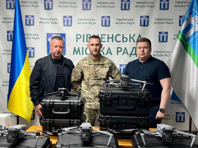 Секретар Рівненської міської ради Віктор Шакирзян передав понад 70 дронів та 7 зарядних підстанцій, які були придбані за бюджетні кошти, для 22-ох військових частин.