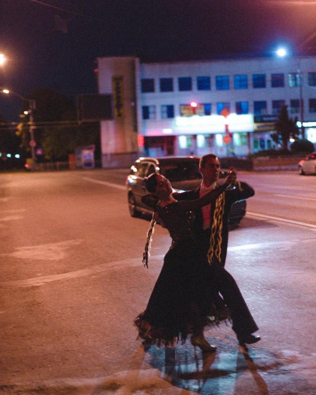 На них видно, як двоє місцевих танцюристів вночі переходять пішохідний перехід, танцюючи танго.