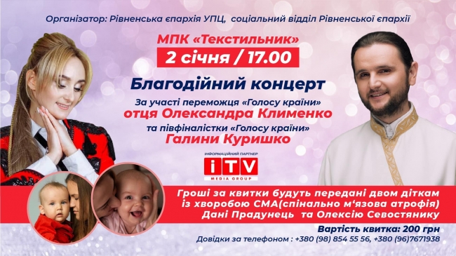 – Усіх працівників нашого відділу дуже розчулили історії маленьких немовлят, котрим потрібні мільйони доларів, щоб повноцінно жити , – розповідає керівник соціального відділу протоієрей Василь Начев. – Сотні людей зі всієї Рівненщини уже долучились до збору коштів, я вважаю , що уся православна спільнота теж не може стояти осторонь. Давайте усі разом, прийдемо на концерт, пожертвуємо гроші і врятуємо два дитячих життя !