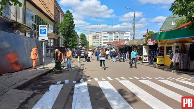 — Ми зробили тимчасову схему організації дорожнього руху, це погоджено з патрульною поліцією та муніципальною вартою — щоб транспорт міг заїжджати вулицею Сагайдачного, потім рухався по Полуботка, далі Пересопницькою і звідси — виїзд на Набережну. Тобто тут односторонній рух з правом паркування. Розмітка тимчасова, але вона потрібна, є час знайти інвестора. Дуже багато років на тому місці стояли тимчасові споруди, ніхто ту дорогу не ремонтував. Будемо оголошувати конкурс, щоб було так, як на вулиці Шевченка: коли інвестор впорядкує територію за власний кошт, передбачить тротуар для пішоходів. Хочемо зробити тут пониження, щоб люди з інвалідністю також могли відвідувати ринок. Тепер можна приїжджати до ринку транспортом і ставити авто на паркомісця, сьогодні вони безкоштовні. Це водночас і безпека, і впорядкування стихійної торгівлі. Зможе проїхати поліція, «швидка», ДСНС.