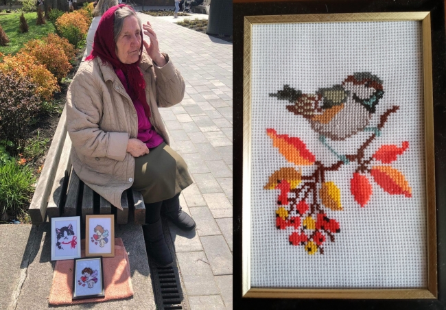 – Бабуся сказала, що вона – переселенка, що вимушена продавати вишивку, щоб зібрати гроші на “взувачку”, адже, коли втікали від снарядів, то про змінне взуття не думали… Нещодавно її сім’ю спіткало велике горе. Сина, який пішов до аптеки, щоб купити матері ліки, розірвало по дорозі на шматки…Бабуся то гірко плакала, то крізь сльози лагідно посміхалася, згадуючи за своє життя. А прожила вона 85 років! Пам’ятає Другу світову війну і тепер, на старості років болісно переживає втрати і жахіття нового нападу на Україну…