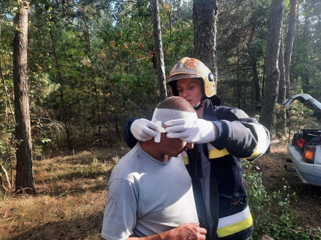 Повертаючись 14 вересня зі службового відрядження по моніторингу пожеж у природних екосистемах на півночі Рівненщини, рятувальники стали свідками ДТП поблизу села Яринівка за участю легкового автомобіля ЗАЗ Таврія. Вони побачили перекинутий на узбіччя дороги автомобіль, зупинилися та розпочали надавати допомогу.