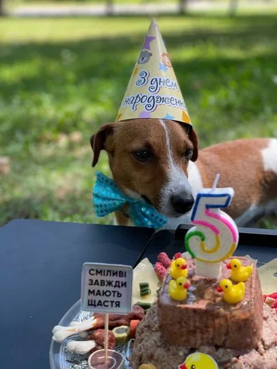 Попри фото зі святковим тортом і чотирилапими гостям, песик написав, що продовжує працювати і у свій день народження, «бо знайти ще одну міну та знешкодити її – найкраще, що я можу собі подарувати».