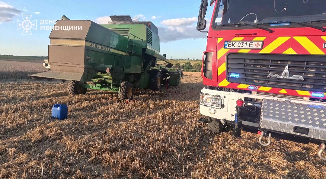Вчора о 19:07 поблизу села Грем’яче Острозької громади під час змолочування зерна загорівся комбайн John Deere.