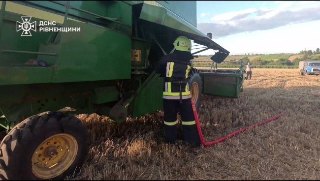 Вчора о 19:07 поблизу села Грем’яче Острозької громади під час змолочування зерна загорівся комбайн John Deere.