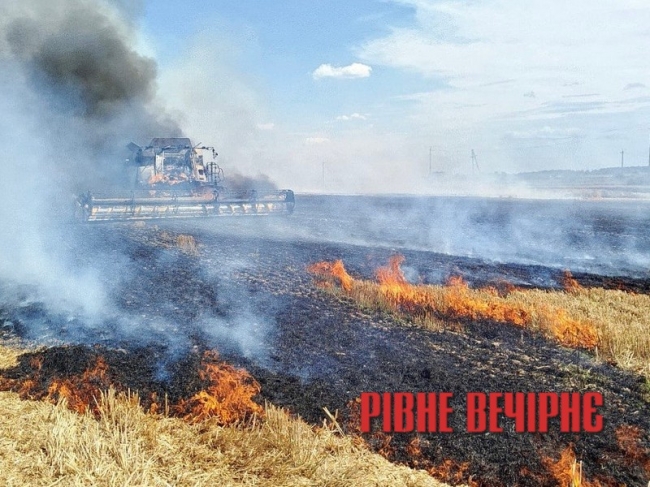 Вогнем знищено зернозбиральний комбайн та 6 т зерна, що знаходилось в комбайні.