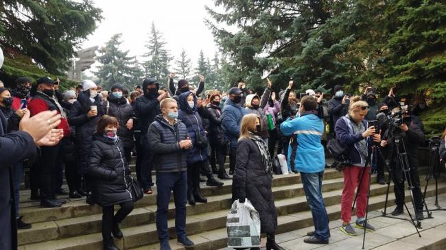 Прийшли на акцію приблизно сотня людей. До них вийшов секретар міськради Сергій Паладійчук, вислухав та пішов радитись із мером.
