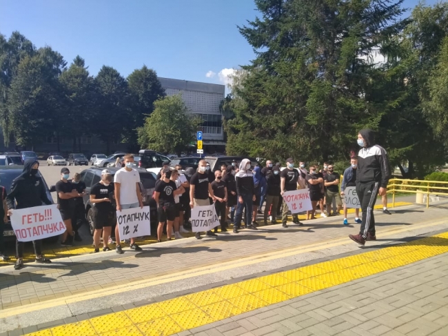 Як пояснив журналістам один з пікетуючих, це активісти, які незадоволені тим, що Руслан Потапчук “змінює партії і бере по 12% з кожного тендеру” . Нібито інформація перевірена. При цьому активіст не зміг пояснити, яку посаду займає Потапчук. І щоб пояснити мету пікету, підглядав у… свій телефон.