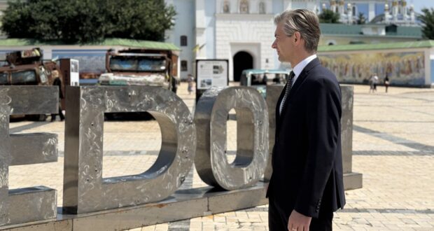 – Сьогодні я в Києві – місті, понівеченому війною, але незламному духом. Останніми тижнями Росія посилила свої ракетні та безпілотні атаки, спрямовані на цивільну інфраструктуру, будинки та навіть лікарні. Цього ранку наш поїзд мав пройти крізь шквал ракет та безпілотників, які уразили Рівне та Дубне. Всього кілька днів тому внаслідок удару по Харкову загинули та отримали поранення десятки людей, зокрема діти. Це не випадковості — це навмисні акти терору, – розповів литовський урядовець.