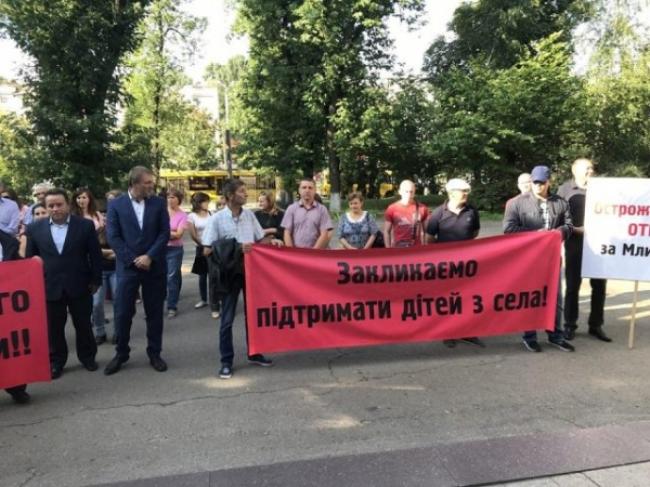 Люди мітингували під час сесії Млинівської селищної ради, на якій приймалося рішення про створення ліцею. А четверо — уже більше дванадцяти днів голодують у парку навпроти сільської ради. Дійшло до абсурду — голова Млинівської об’єднаної громади заявив, що через тиск на нього поїде до Києва і встановить намет під адміністрацією Президента. Відстоюватиме у столиці виділення додаткового фінансування на сільські школи, що дозволить не закривати гімназію. Погрози наметним протестом подіяли. Зменшувати градус протистояння став голова Рівненської ОДА Олексій Муляренко. У суботу, 14 липня, сім годин він мирив сторони конфлікту в обласній держадміністрації.