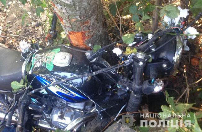 16-річний мотоцикліст з’їхав з дороги в канаву і врізався у дерево.