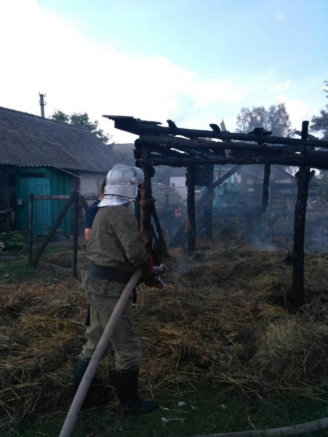 Прибувши на вулицю Захисників Вітчизни,  рятувальники встановили, що там горить піднавіс з сіном на території приватного господарства та існує загроза перекидання вогню на господарську будівлю.  Пожежу вони зуміли загасити. Вогнем було знищено: шиферну покрівлю піднавісу площею 11 м.кв, чотири дерев’яних стовпи, півтонни сіна  та пошкоджено: шиферну покрівлю.  Причина пожежі та завдані нею збитки встановлюються, повідомляє ГУ ДСНС в Рівненській області. .