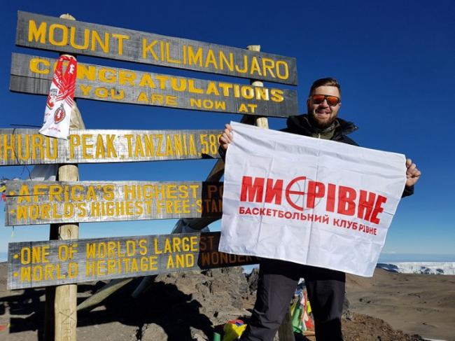 Прапор баскетбольного клубу “Рівне” встановив на горі Кіліманджаро в Африці, висота якої 5895 метрів, рівнянин Євген Савчук.