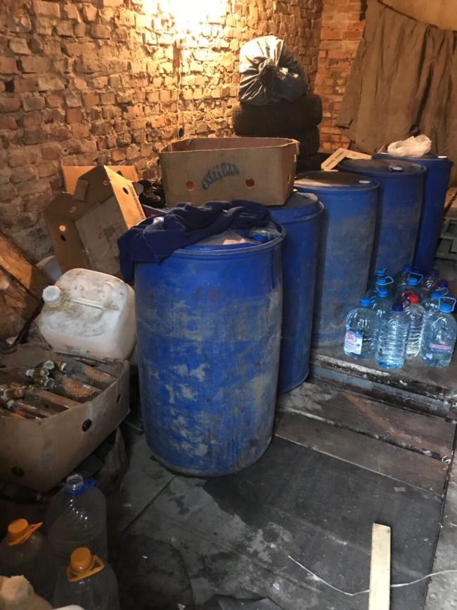 ГУ ДФС у Рівненській області повідомляє, що у гаражі знайшли 225 літрів спирту та 2602 літри вже готової продукції, розлитої у п’ятилітрові ПЕТ-пляшки, засоби для виробництва фальсифікованих напоїв. Спир , спиртосуміш та засоби для виробництва, орієнтовною вартістю 571,0 тис. грн., вилучено. Слідчі дії тривають.