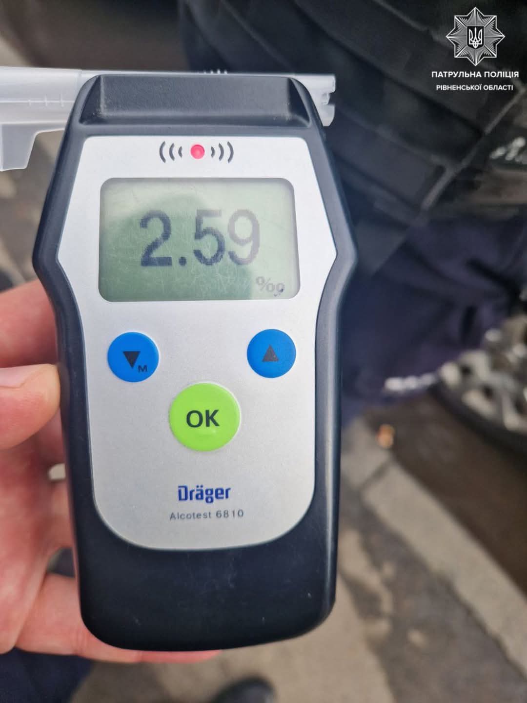 Чоловікові запропонували пройти огляд на стан алкогольного сп‘яніння, на що він погодився. Результат: 2, 59 проміле.