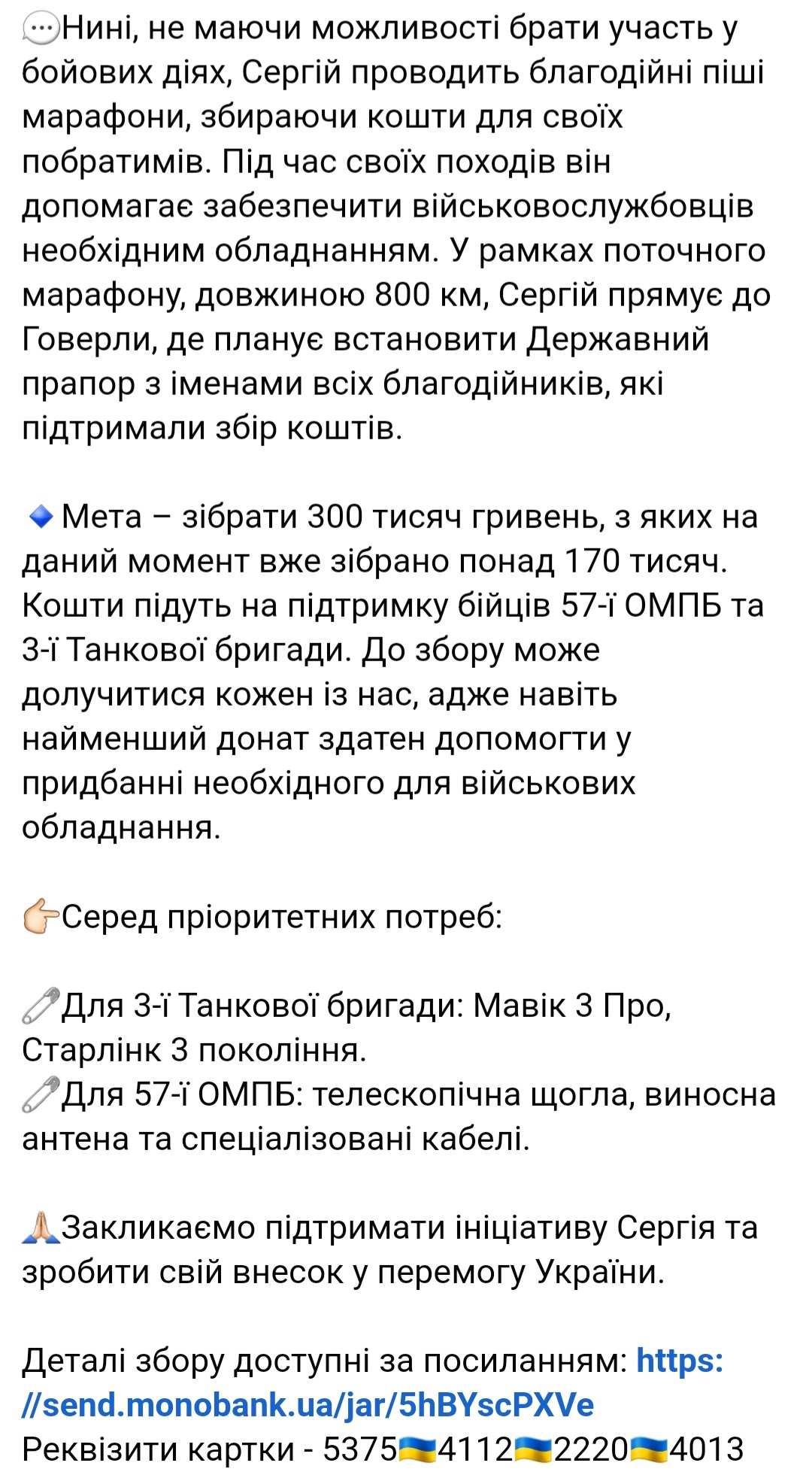 Тепер ветеран проводить благодійні марафони на підтримку ЗСУ.