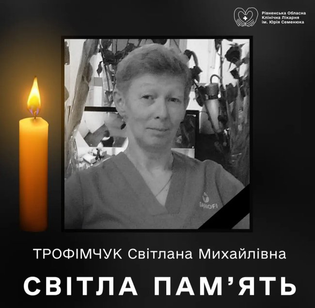 Новини Пішла на небо колишня медсестра Рівненської обласної лікарні Прощання із Світланою Трофімчук відбудеться завтра, об 11-й годині, по вулиці Зеленій, 25 в селі Великий Житин. admin 9 Серпня, 18:17 0 хв. читання Поділитися Про смерть своєї колеги повідомили на фейсбук-сторінці медзакладу: Графік відключення електроенергії на Рівненщині 9 грудня Світло вимкнули під час прання… На Рівненщині чоловік роками знущався над тещею — справу розгляне суд Вода після їди розтягує шлунок Біля кінотеатру в центрі Рівного знову роздають гарячі обіди Поділитися цією статтею Facebook Telegram Копіювати посилання Приєднуйтесь 58тисСтежити1.2тисСтежити13.9тисСтежити6.1тисПідписатися Читайте нас у Telegram: тільки важливі та перевірені новини Новини 8 Грудня 2025 Графік відключення електроенергії на Рівненщині 9 грудня 22:04 Світло вимкнули під час прання… 21:35 На Рівненщині чоловік роками знущався над тещею — справу розгляне суд 21:20 Вода після їди розтягує шлунок 21:17 Біля кінотеатру в центрі Рівного знову роздають гарячі обіди 20:45 Вифлеємський вогонь миру привезли до Рівного 20:00 Громада на Рівненщині повідомила про загибель 25-річного військового 19:00 До Миколая діткам загиблих солдатів подарували незабутнє свято 18:59 «Верес» прокоментував зрив матчу у Житомирі 18:15 У лікарні помер кулеметник з Малого Житина 17:30 Всі новини