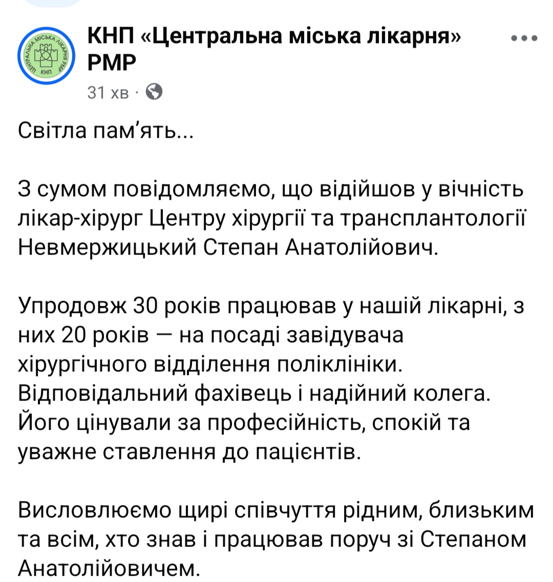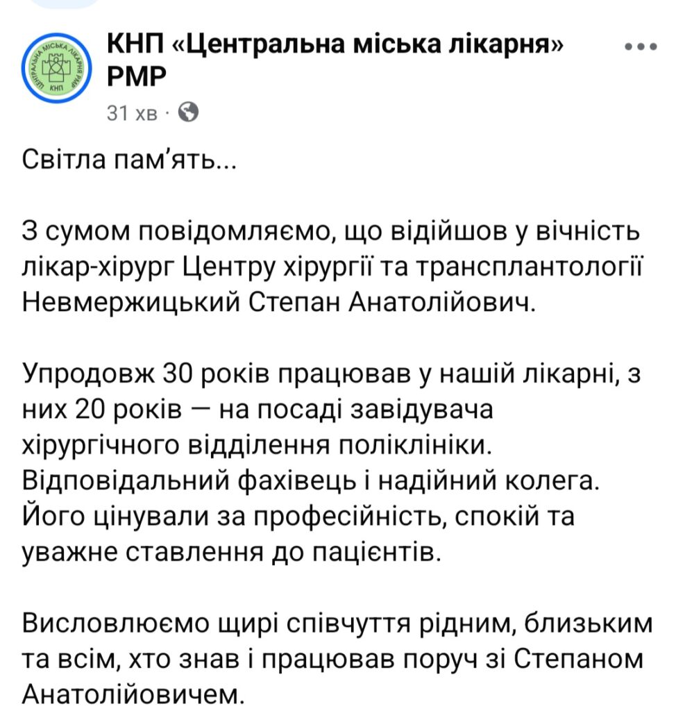 Сумну звістку про смерть свого колеги Степана Невмержицького повідомили у центральній міській лікарні Рівного.
