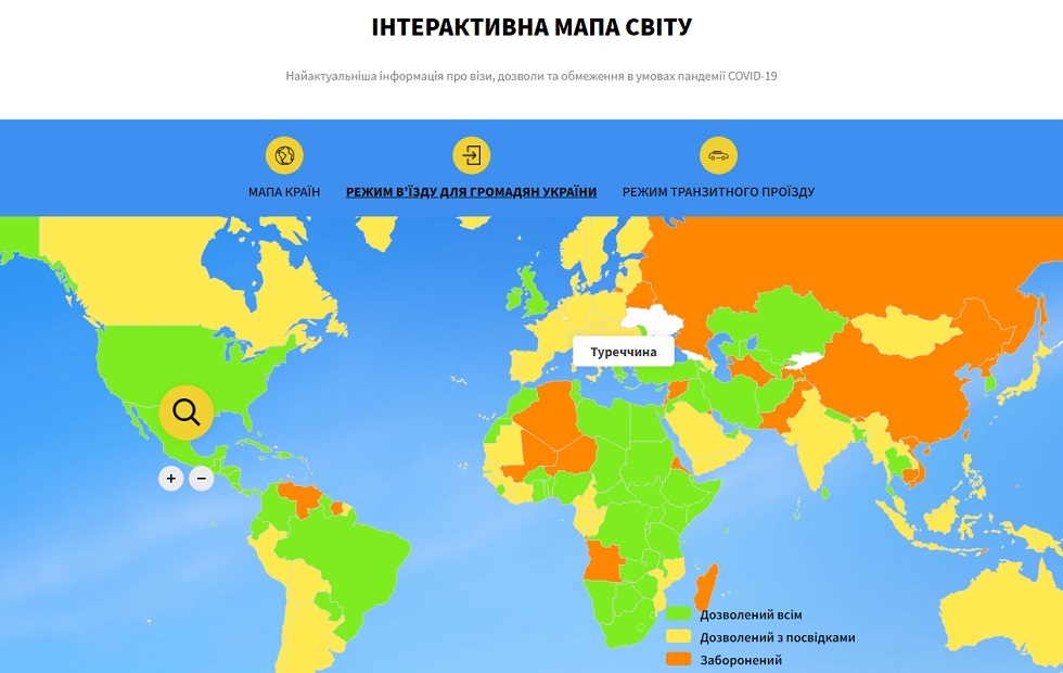 За даними Міністерства закордонних справ, маючи негативний ПЛР-тест, українці можуть відвідати Грецію, Туреччину, Грузію, Сербію, Боснію і Герцеговину, Болгарію, Хорватію, Кіпр, Єгипет, Туніс, Ліван, ОАЕ, Сейшельські Острови, Мальдіви, Вірменію, більшість країн Америки та Африки.