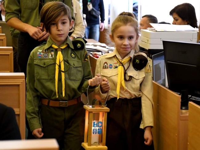 Депутатів привітали діти-“пластуни”, які передали їм Вифлиємський вогонь.