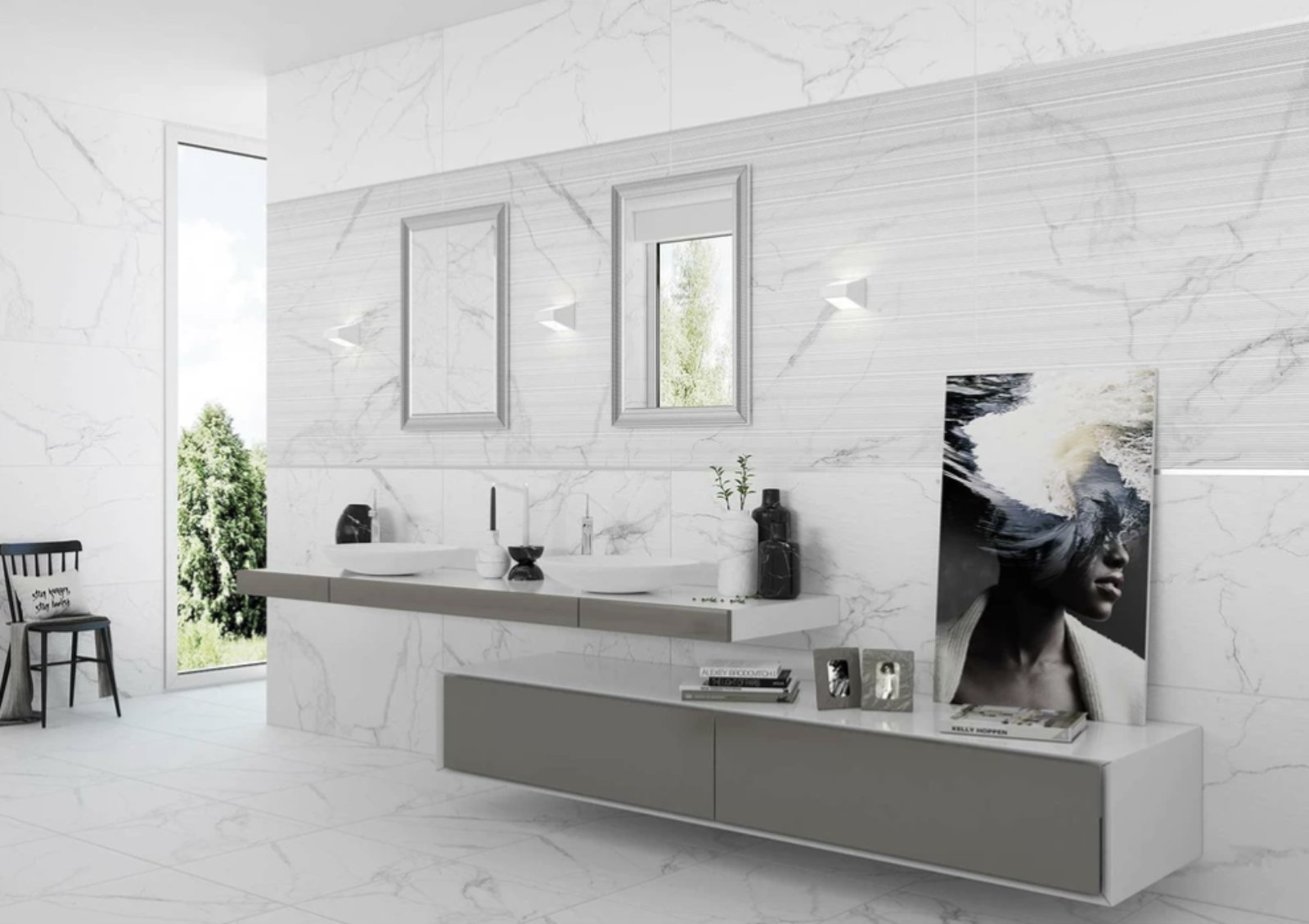 - Великі плитки допомагають візуально збільшити простір ванної кімнати. Коли ми бачимо менше розділів і ліній, наш мозок сприймає простір як більший.