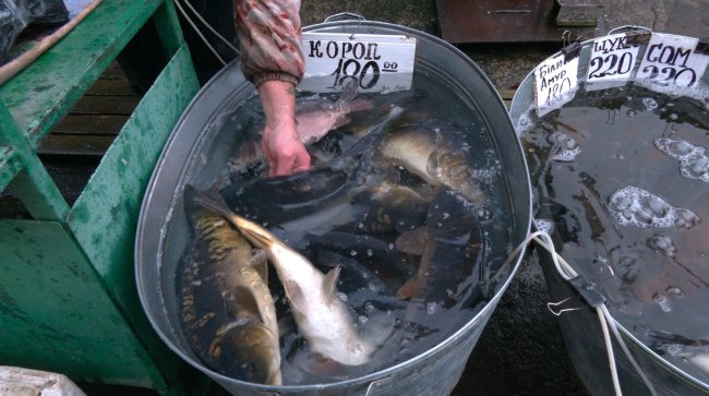 На центральному продуктовому ринку Рівного активно продають живу рибу.