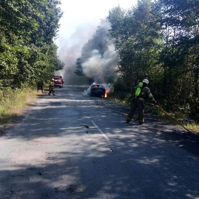 Вогнем знищено моторний відсік, салон та колеса легкового автомобіля. Жертв та постраждалих немає. Причина пожежі та розмір збитків встановлюються.