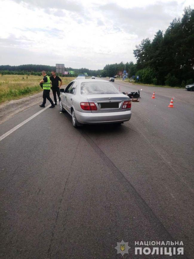 Мопедист тяжко травмувався. Непритомного чоловіка з відкритою черепно-мозковою травмою та рваними ранами стопи спочатку госпіталізували до місцевої лікарні, а потім доправили до медзакладу у Рівне.