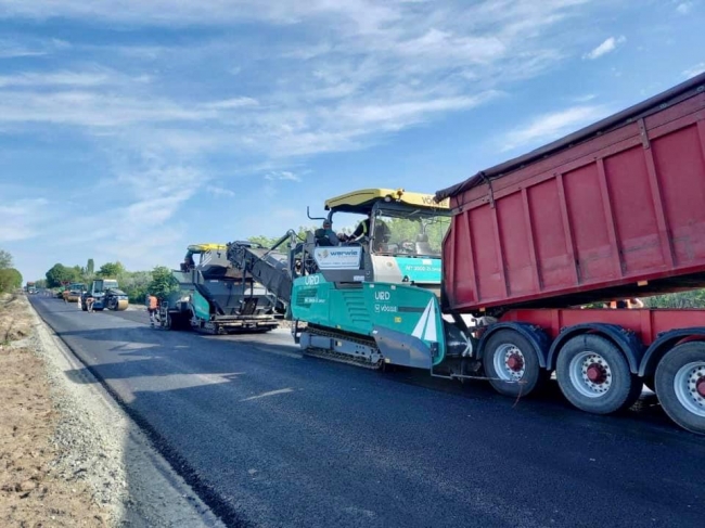 – Для покращення експлуатаційних якостей відремонтованої ділянки та загальної якості покриття підрядник застосовує технологію обов‘язкову для будівництва міжнародних трас 1 технічної категорії – асфальтобетон подається до укладача через спеціальну машину-перенавантажувач.