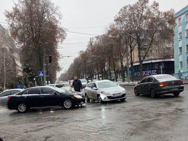 На перехресті вулиць Степана Бандери та Княгині Ольги не розминулися Рено Меган та Тойота Кемрі.