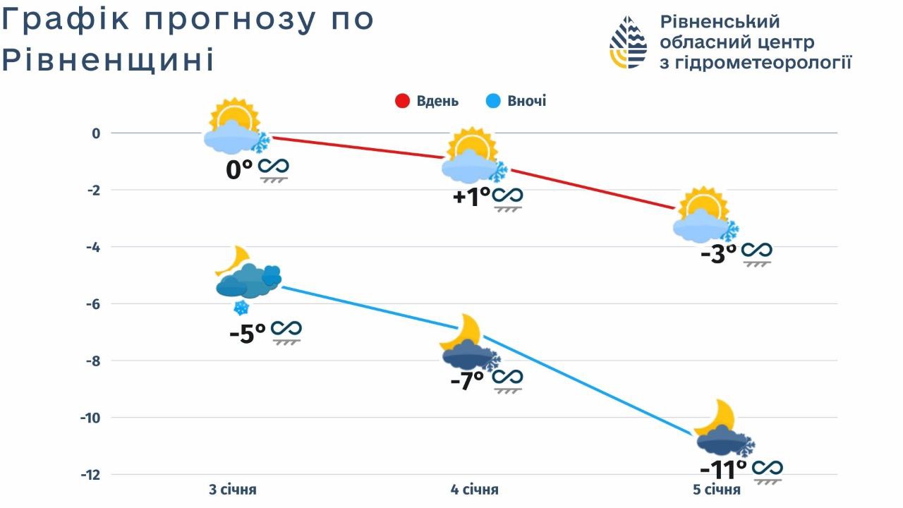 – Погоду Рівненщини цими днями визначатиме поле підвищеного тиску, переважно без опадів, очікується більше сонячних прояснень, на дорогах все ще слизько. Температура повітря поступово буде знижуватись і початок тижня буде найхолоднішим, – прогнозують в обласному центрі з гідрометеорології.