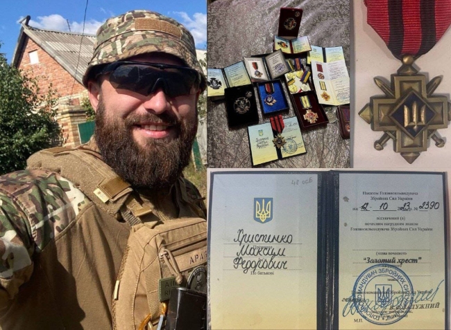 32-річний командир міномета мінометного взводу має низку державних нагород, зокрема, “Учасник АТО”, “За оборону Маріуполя”, золотий нагрудний знак «Мужність, патріотизм, націоналізм» («Червона калина»), “За взірцевість у військовій службі” (ІІІ ступеня), “Срібний Лев” і “Золотий Лев” командира 24 окремої механізованої бригади імені короля Данила.