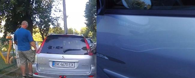 Відео з реєстратора рівнянка опублікувала у Facebook. На ньому чути скрегіт по металу, а згодом і чоловіка з двома собаками, який проходить повз авто Юлії і проводить чимось по кузову.