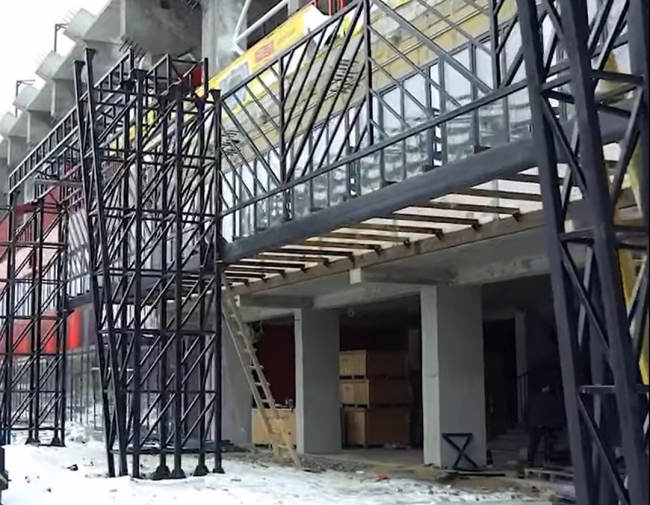 Станом на початок лютого паралельно виконуються будівельні роботи на Західній та Східній трибунах.