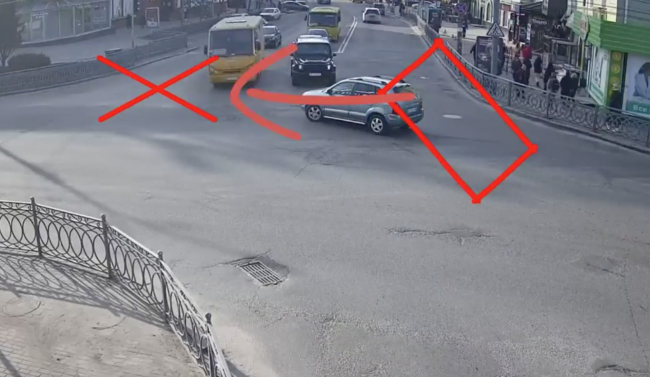 Зокрема, видно як на вулиці Соборній порушили вимоги знаку 3.23 – “поворот ліворуч заборонено”.