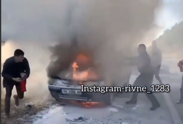 В інстаграм-спільноті rivne_1283 очевидці показали, як чоловіки вогнегасниками допомагали водію загасити охоплений вогнем автомобіль, який палав на дорозі як смолоскип. Щоправда, не всі, деякі свідки з цікавістю лише спостерігали, як інші працювали там рятувальниками. Причина пожежі в авто поки що невідома.