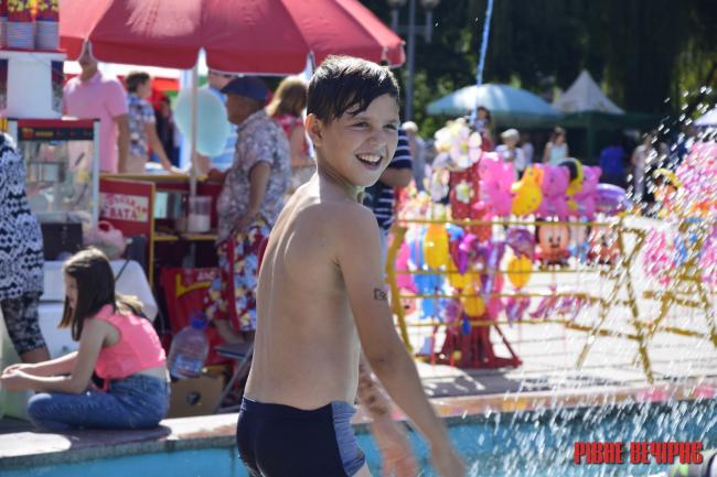 Оскільки було спекотно, багато продавців ховалися від сонця під парасольками, а діти радісно плескалися у ввімкнених до свята фонтанах.