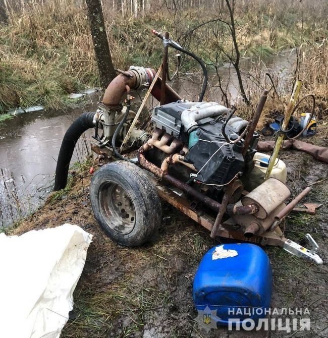 Вчора близько 14 години в лісовому масиві поблизу села Золоте Дубровицького району поліцейські виявили та вилучили дві мотопомпи кустарного виробництва на базі двигуна «Mercedes-Benz», обладнання для видобутку бурштину, а також два автомобілі «УАЗ» без номерних знаків.