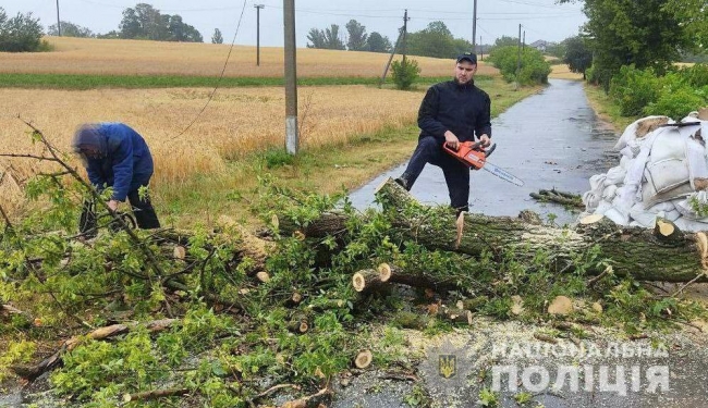 Поліцейські одразу взялись прибирати «перепону» з дороги, адже мають усі необхідні інструменти в службових автомобілях. Бензопилою правоохоронці разом із місцевими жителями розрізали гілля, прочистили ділянку дороги та забезпечили подальший рух автомобілів.